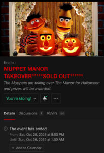 10.25.2025 – MUPPET MANOR TAKEOVER*****SOLD OUT******