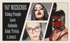 Miztress Claudia & Nicholas Tanek tell tales of how kinky people are animal lovers. Puppy play vs. Kitten Play vs Pony Play? Domme Danielle joins us for the birth of YKF KINK TRIVIA. YKF WEEKENDS – Misconceptions Pt. 2 – Miztress Claudia, Mistress Natasha, & Domme Danielle YKF Weekends 3.9.2025 – MISCONCEPTIONS … Continue reading YKF Weekends (w/ Miztress Claudia & Domme Danielle) – Kinky People Help Animals / KINK TRIVIA- 3.23.2025