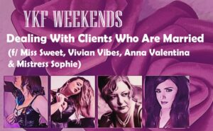 “There’s a lot of money in what you shouldn’t do.” Miss Sweet, Vivian Vibes, Anna Valentina & Mistress Sophie join #YKF Weekends to discuss when Dommes have married clients. The scheduling? The money? The laws? The lies? The reality of it all. “Emotional safety leads to intimacy.” VIVIAN VIBES Twitter: https://twitter.com/TheGoddessViv Instagram: Instagram.com/viviansgotvibes FetLife: https://fetlife.com/users/8058823 PEP: https://peplove.com/ladies/goddess-vivian MISS … Continue reading YKF WEEKENDS: Dealing With MARRIED Clients (f/ Miss Sweet, Vivian Vibes, Anna Valentina & Mistress Sophie)