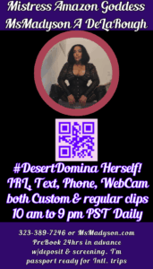 I’m FemDom with dangerous curves. Standing 5’10”, I have been in love with BDSM from the start. I enjoy life and all that it has to offer, taking care of My mind, spirit & body to the best of My abilities. So don’t underestimate Me as My love of this lifestyle both personally & professionally, has opened so many doors & windows of opportunity for ME to learn & grow. I was taught this lifestyle before everyone was into it via the internet, so I do enjoy both old-school ways as well as new ideas that have been brought to light because of the internet.
